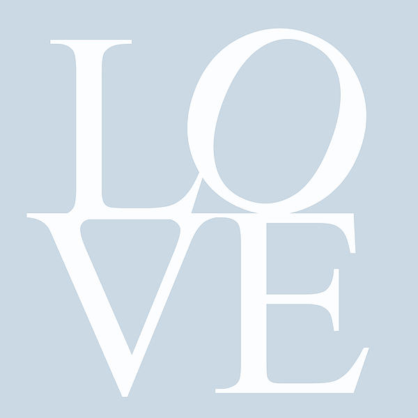 LOVE typography text written against a pale blue background.
